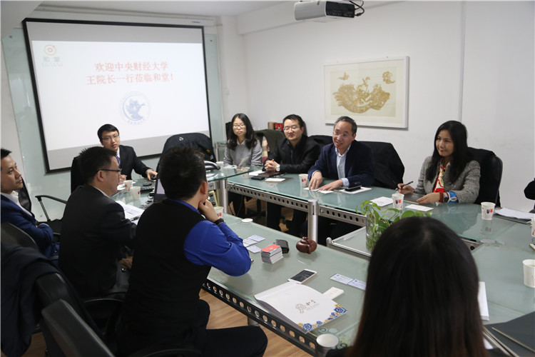 王瑞华院长在座谈会中表示,很高兴来到大数据金融营销企业北京和堂传媒广告有限公司拜访,我校星空XK体育为适应“互联网+”及大数据发展趋势,满足国家经济建设和社会发展对金融、大数据、营销的跨界复合型、应用创新型人才的需求,在国内高校中开创先河,2015年新设了大数据营销本科生专业并已经招收了第一届学生,2016年也将对新推出的金融与大数据营销MBA项目开始进行招生。此次调研主要是了解公司的运作模式及营销方式,并围绕双方如何开展人才培养及学术研究的合作事项进行探讨。