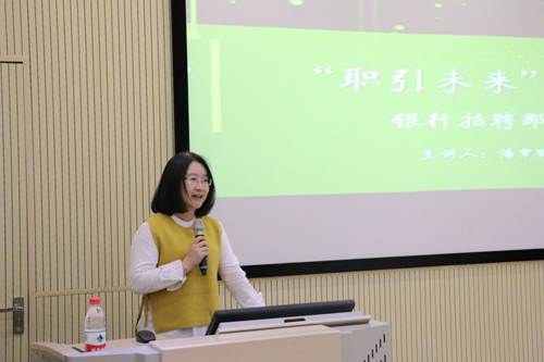 Pandivided his lecture into three parts. First, he decrypted the complicatedrecruitment procedures of banks and analyzed the remuneration structures andlevels of state-owned banks, joint stock commercial banks, and online financialbanks. Next, he shared some useful tips on bank interviews by citing real cases.At the end of his lecture, he elaborated on how to make informed career plans forlong-term development in the banking sector.