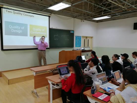 On themorning of April 19,AssociateProfessorStephen Shum gave a lecture on the subject of “Inthe Forefront of Operations Management” which attracted 50-odd studiousfreshmen from the CUFE Business School. The lecturer has taught the course ofOperationsManagementto many students at different academic levels in CityU and capturedremarkable achievements in related research in this field. In his lecture, Dr. StephenShum introduced the development of this discipline and its up-to-date trendsbased on his own studies in plain terms, and elaborated in-depth on the case ofquality management in operations management. After the lecture, students raisedmany questions and Dr. Stephen Shum answered these questions one by one.