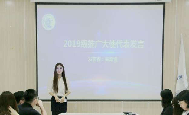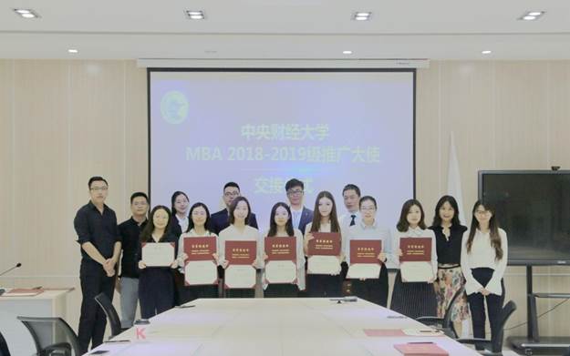In the fascinating month of May, CentralUniversity of Finance and Economics (CUFE) successfully held the 2018-2019 CUFEMBA Campus Ambassador Handoff Ceremony at Room A02 of the MBA Education Center.Professor Jia Xiaojing, Deputy Director of the CUFE MBA Education Center, andteachers from the Project Development Office, including HuangJixin, Luan Tian and Liu Xinfeng, attended the occasion upon invitation. Headof the 2019 campus ambassador group Wang Yuanyuan presided over the event.
