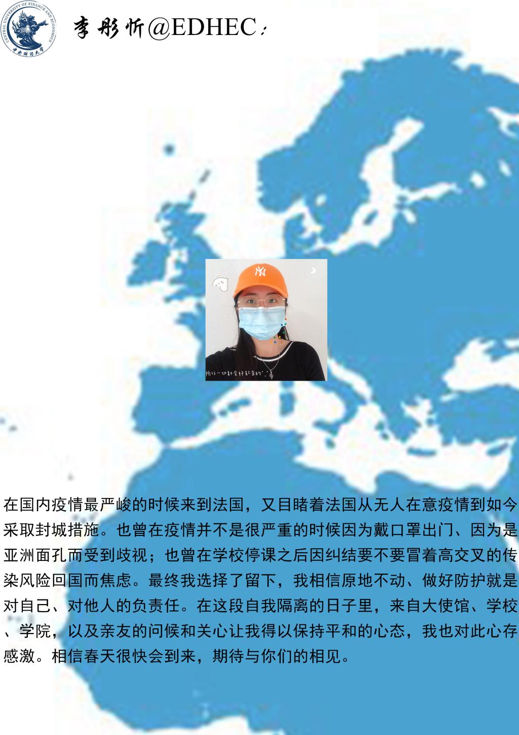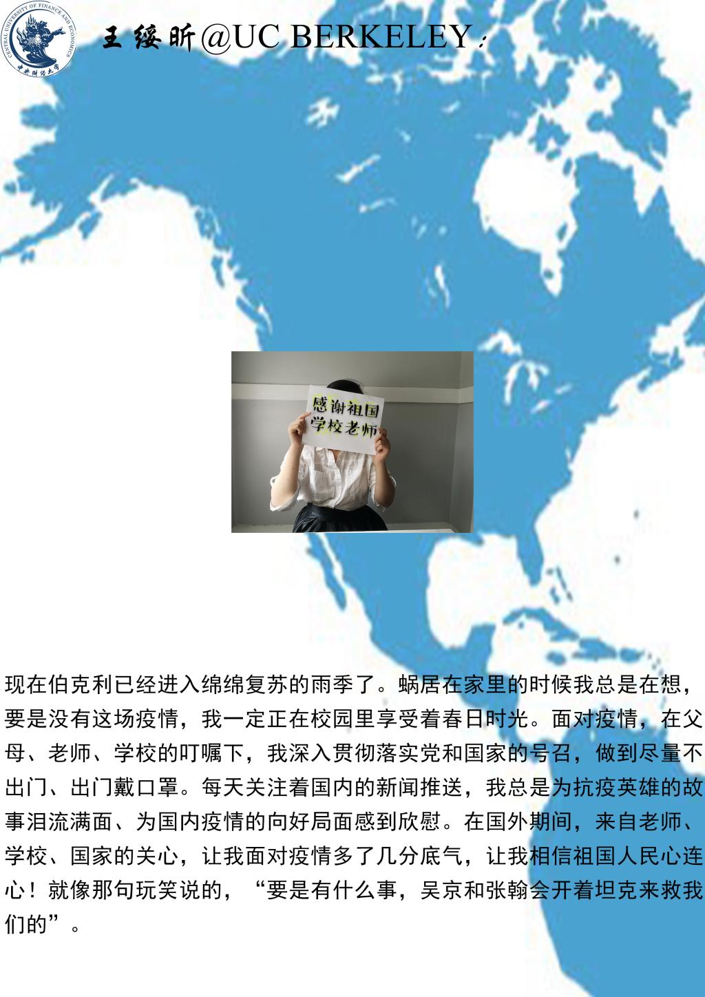 The students reported on their life, work, studying and epidemic prevention, and expressed theirgreetings andconcern to professors and studentsat home, and gratitude for thecareful and thoughtful service of CUFE Business School. The students said that through the epidemic prevention and control, it is necessary to learn the right way ofthinking, to be independent, adapt to changes, reduce anxiety, face reality bravely, and dothose that would really help.