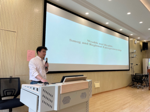 The title of Professor Lin’s speech was Wealth and Health: Smog and Regional Entrepreneurship. This study applied provincial air pollution data and entrepreneurship data in China to analyze the negative impact of smog on entrepreneurship and the corresponding mechanism. Theresearch results indicated that the effects varied by region. The negative effects were stronger inregions with higher incomes or higher lung cancer rates.