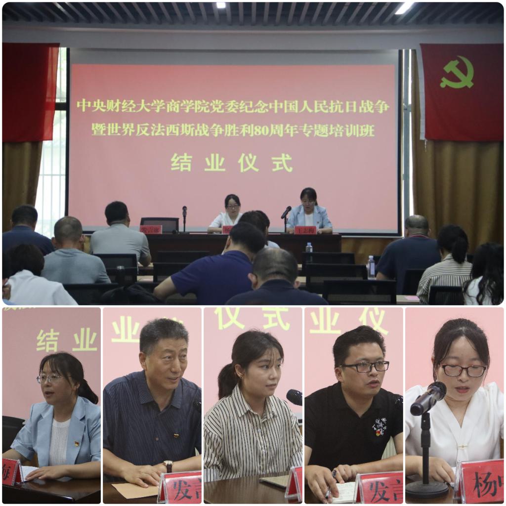 结业式由星空XK体育党委组织员王志梅主持,人力与组织管理系季晓得助理教授、MBA学生党支部纪检委员曾功星和战略系庞守林教授分享了培训收获和体会。星空XK体育党委副书记、纪委书记杨中英作总结,她回顾了培训过程,肯定了学员们在学习中的投入与收获,希望大家以此次培训为起点,将抗战精神转化为推动学院党建提质增效、事业高质量发展的实际行动。