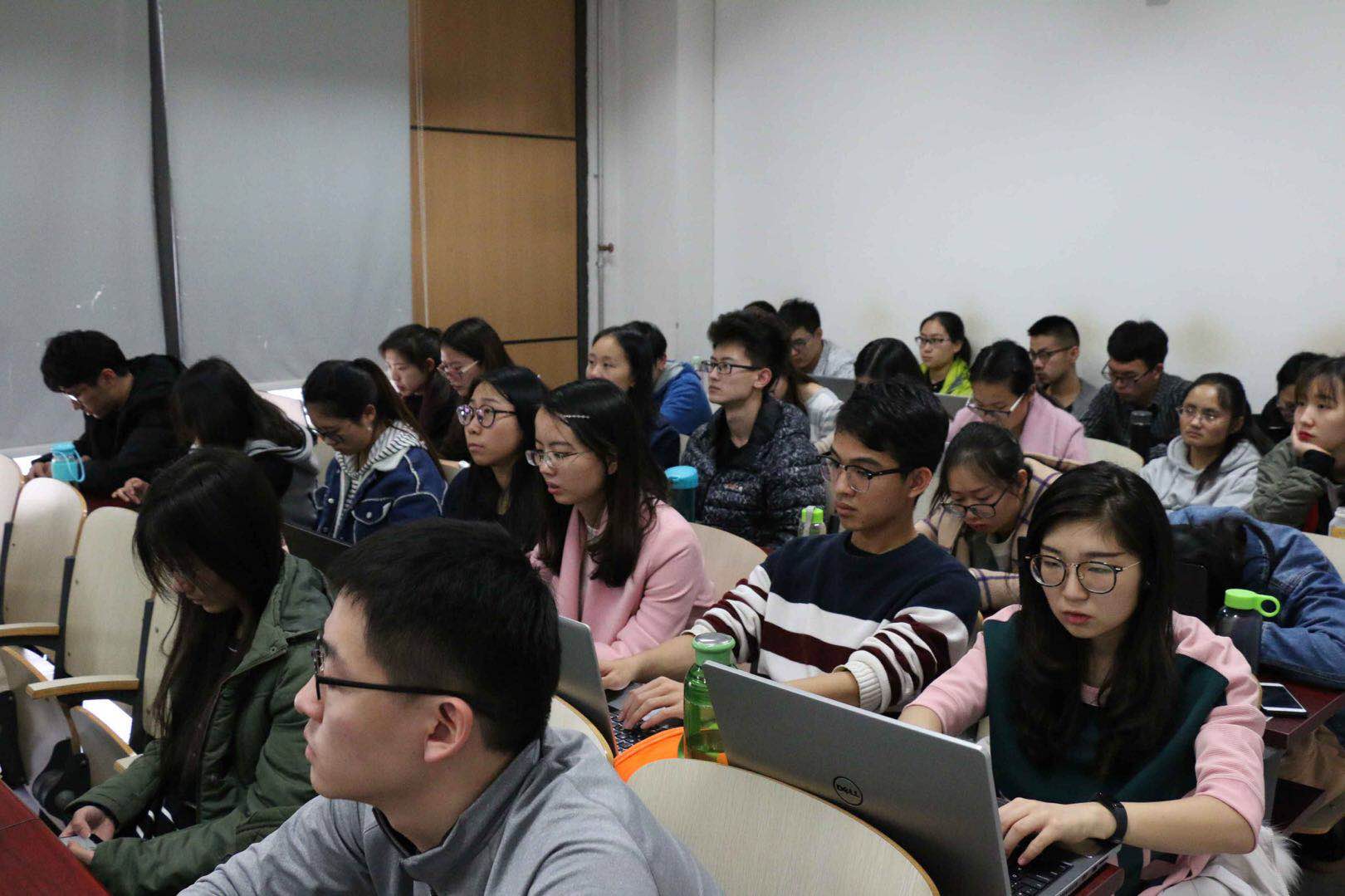 董良杰老师首先从党的十九大报告的产生、各个大会的异同、党的十九大主要议程、会议看点及世界各界对党的十九大的关注情况共六个方面展开了对党的十九大报告的介绍。关于党的十九大报告的内容、历史上第17次对党章进行修改、首次开设“党代表通道”、6场记者会齐看中国发展和8场集体访谈等内容让人印象深刻。老师指出,当世界上一些国家在搞“拳击赛”的时候,中国共产党却在不同阶段用不同方法,一棒接一棒地跑历史的“接力赛”。这就是中国共产党成功的秘密,也是中国成功的秘密。