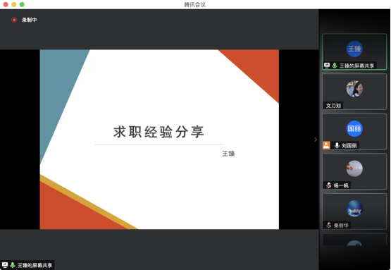 2021年春招正在进行,2021年的秋招也将逐渐来临。为提高2021届学硕同学的就业意识,同时为准备求职的同学提供经验参考,4月13日,星空XK体育2020级企管学硕研究生党支部联合班委开展“百名党员办实事——职引未来”秋招经验分享会主题党日活动。会议采取线上形式,特邀星空XK体育2021届毕业生王相谋、王臻、杨书雷3位同学进行经验分享。