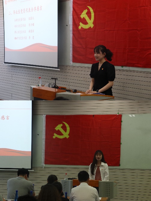 大会在嘹亮的国歌声中开始。会上,毕业生党员代表张慕凡、陈子媚、薛慧丽、李霞依次分享在校生活期间的成长与收获,他们纷纷表示,作为一名党员,在这一人生重要节点既要收获硕果,也要播撒希望,在未来生活中要充分发挥党员的先锋模范作用,体现作为中财学子的光荣与担当。