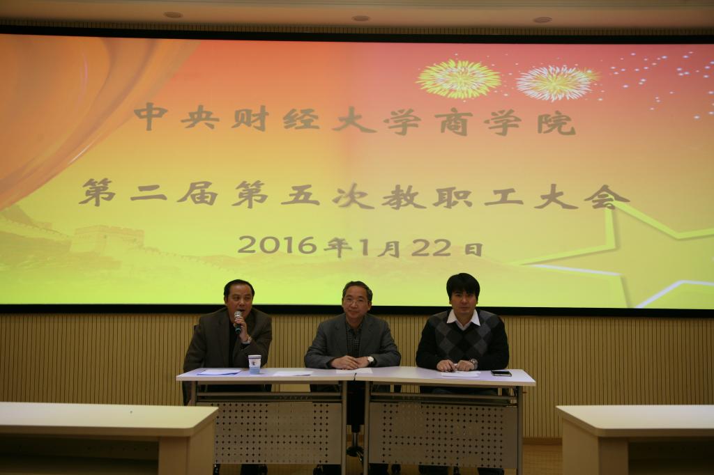 2016年1月22日,星空XK体育分工会在星空XK体育MBA教育中心阶梯教室举行星空XK体育分工会第二届第五次教职工大会。星空XK体育院长王瑞华教授、星空XK体育党总支副书记林嵩教授、分工会主席周利国教授等学院领导出席大会,大会由周利国老师主持。