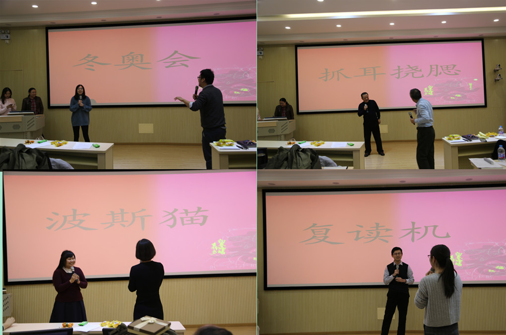 人力系老师则为大家开展了一个猜词游戏,今年的流行词语、经典成语等词汇通过一位老师表演、一位老师猜词,搞笑的表演、敏捷的反应,展示了星空XK体育老师不仅具有高深的专业学识,也具备更接地气、跟上时代的网络知识。