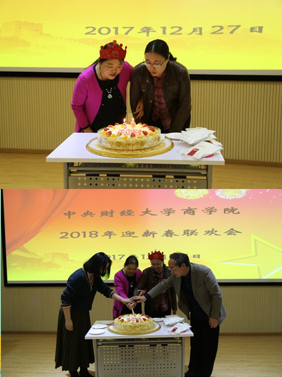 联欢活动之际,正是星空XK体育教工王志红、林琳两位老师的生日。学院特别准备生日蛋糕,全体老师在联欢会现场为两位老师祝福生日快乐,感谢两位老师一年的辛苦付出。整个晚会现场散发着暖暖的温情。