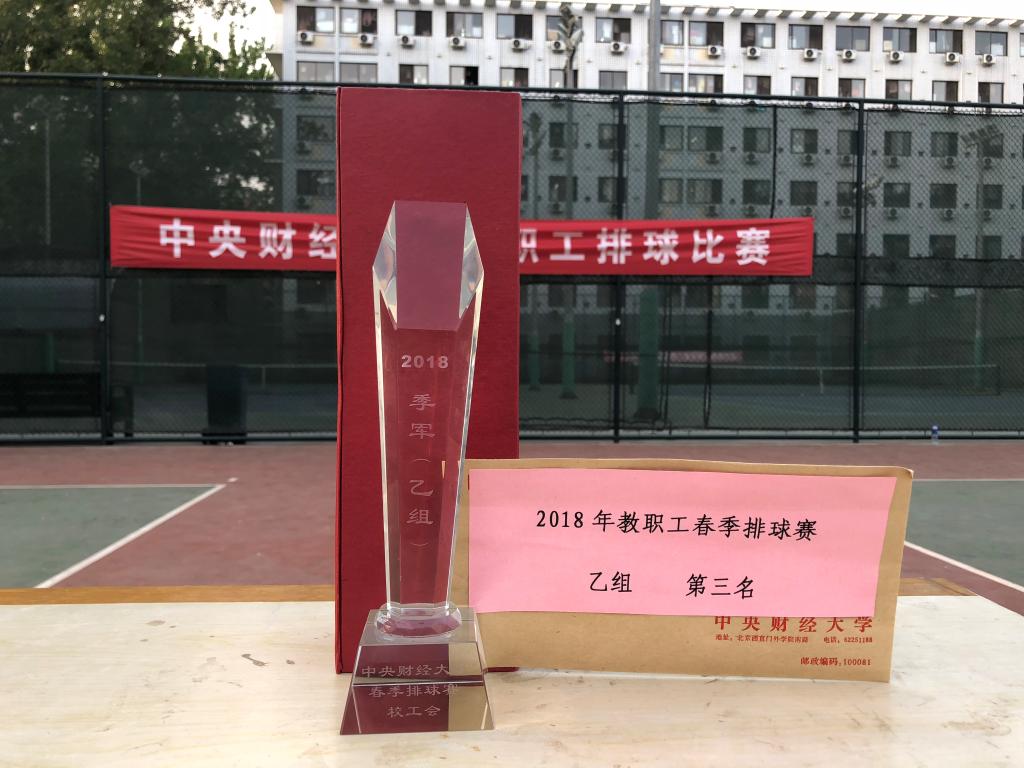 由14个部门排球队构成的2018年度春季星空XK体育官方网站教职工排球乙组比赛于4月17日正式拉开序幕,分两个阶段进行。第一个阶段赛程中,星空XK体育排球队经过三场比赛,分别以两个2:0和一个2:1的战绩顺利进入第二阶段比赛。第二阶段比赛进行了两场比赛,均以2:0的良好战绩取胜。由此顺利进入乙组四强。在最后四强比赛的两场比赛中,尽管星空XK体育排球队均以失败告终,但基于前面比赛的良好战绩,星空XK体育排球队最终获得了乙组第三名的好成绩。