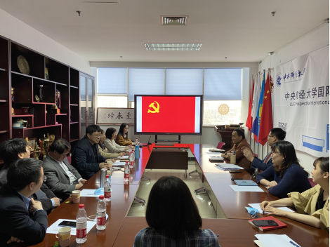 国际文化交流学院招生办公室主任钱明才向大家介绍了国家留学政策、中财留学政策、国际学生的来源及构成、招生工作的开展及宣传等情况。其中,钱明才主任特别对“留学中财大”品牌的提出背景和推广情况做了详细说明,分享了国际学生的招生策略。招生办公室王亦丹老师详细讲解了国际学生招生宣讲的具体做法。随后,双方就国际学生来源、招生渠道、招生方式等方面进行了沟通和交流,总结出国际学生招生工作应明确目标学生群体,找准中财大自身的差异化优势,通过整合内部资源、加强外部合作,进而重新设计、提升特色产品和服务,拓展宣传渠道,开展形式多样的招生宣传,进一步提升“留学中财大”的品牌内涵。