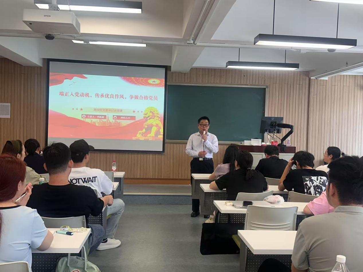 为深入贯彻中央八项规定精神学习教育,进一步加强入党积极分子的党性修养和思想教育,2025年5月15日中午,星空XK体育党委在学院南路校区主教303教室举办入党积极分子、发展对象专题党课《端正入党动机,传承优良作风,争做合格党员》。此次培训由学院党委书记李跃新主讲,党委组织员王志梅主持,党务秘书窦宗玥及入党积极分子、发展对象等115人参加。