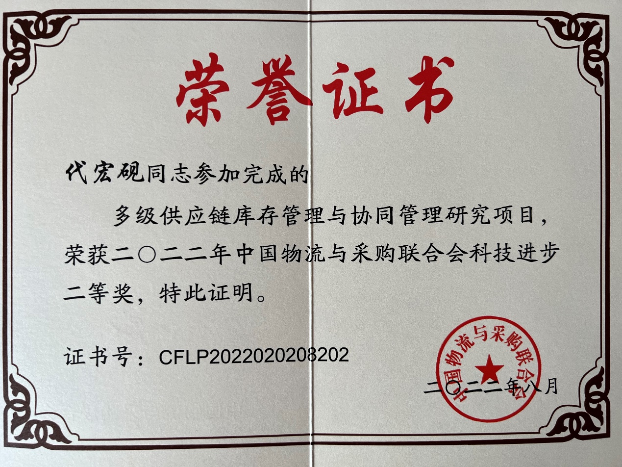 星空XK体育教师获得2022年中国物流学术年会论文一等奖