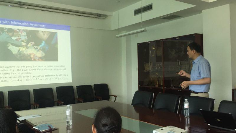 2018年6月19日,澳大利亚悉尼大学星空XK体育Erick Li博士应邀来我校作题为“A Robust Approach to Optimizing Procurement Contracts”的讲座。星空XK体育部分教师及博士、硕士研究生参加讲座。 Erick Li博士首先介绍了不对称信息下的合同机制设计,并从文献出发梳理了相关研究进...